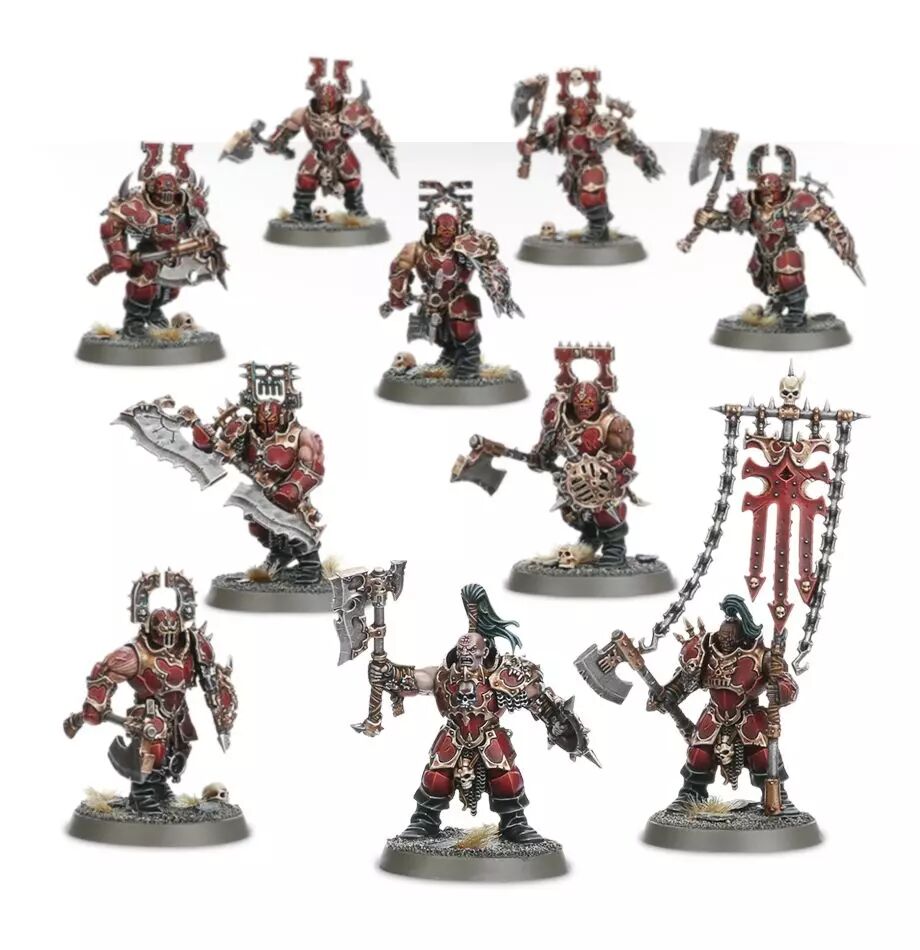 Réf. : 83-24 Ce kit plastique vous fournit tout le nécessaire pour monter dix Blood Warriors. Il propose de nombreuses options de personnalisation, chaque figurine pouvant recevoir soit une hache Gore et un poing Gore, soit une paire de haches Gore. Une des figurines peut devenir un Chaos Champion doté d'une hache encore plus impressionnante: c'est vraiment un kit fait pour les amateurs de haches! Une autre figurine peut être munie d'une arme spéciale améliorée, le glaive Gore, et une autre encore peut devenir porte-icône. Comprend dix socles ronds Citadel de 32mm.