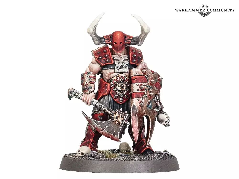 Les Porte-mort sont de puissants champions et lieutenants, habités d’une certaine ambition et possédant les talents meurtriers qu’il faut pour la concrétiser. Leur ascension nécessitera d’offrir à Khorne les plus beaux trophées, les crânes de rois et de seigneurs de guerre, mais ils n’ont aucun mal à en amasser toute une collection, avec une effroyable hache infligeant 3 Dégâts et la capacité à tuer net leurs adversaires en obtenant un résultat supérieur à leur Santé sur 2D6 !