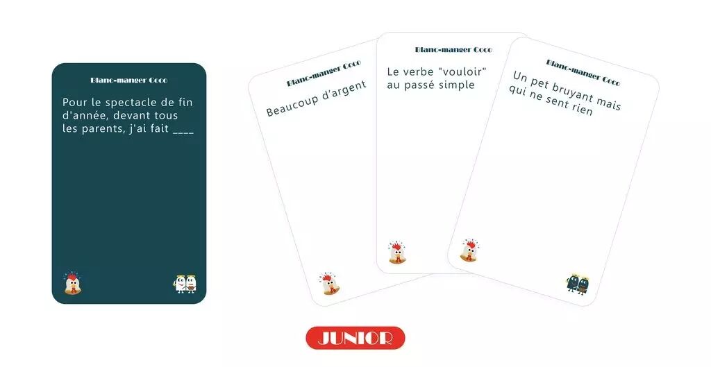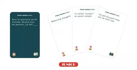 Chaque joueur autour de la table reçoit 9 cartes blanches. Le joueur le plus âgé devient le maître du jeu et tire une carte bleue (une phrase à trou) et la lit à haute voix. Les autres joueurs posent la carte blanche de leur choix face retournée sur la table. Le maître du jeu relit la phrase en comblant le trou avec les cartes blanches une à une puis choisit celle qui l'a fait le plus rire. Le gagnant marque un point et devient maître du jeu à sont tour. Le premier joueur à 4 points a gagné