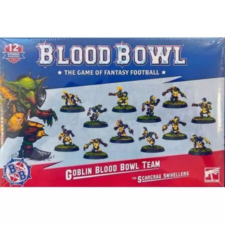 Prenez-vous une équipe de Gobelins pour vos parties de Blood Bowl avec cette boîte de figurines plastique. Vus y trouverez 12 Gobelins à monter, soit 6 paires de corps différents et 7 paires de têtes différentes, pour mieux différencier vos joueurs! Il y a aussi 6 ballons d'équipe gobeline, représentant les tours pendables que les Scarcrag Snivellers affectent de dédaigner – 2 ballons dégonflés, 2 avec un Gobelin coincé dedans et 2 farcis de dynamite – 2 pions compte-tour et 2 jetons d'équipe double face. Ce kit en 54 pièces est fourni avec 12 socles de 32mm pour Blood Bowl et une feuille d'équipe à 1 000 000 pièces d'or, avec 8 (oui, huit!) relances d'équipe et un Facteur de Popularité de 4!