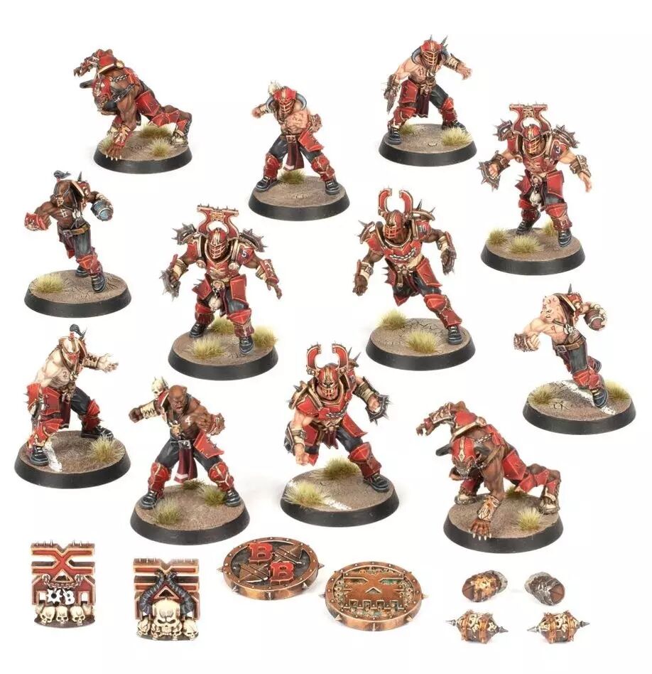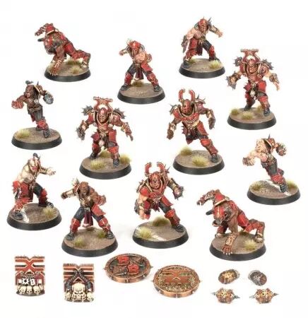 Vous voulez une équipe capable de mutiler facilement vos adversaires, et de marquer de beaux touchdowns? Les équipes de Khorne ont tout ce qu'il faut côté bagarre et juste assez de cervelle pour exploiter leur brutalité. Les Marauder Linemen sont suffisamment solides pour encaisser les dégâts, et assez malins pour se rappeler de passer le ballon pendant les matchs. Ceux qui survivent au terrible régime d'entraînement des équipes de Khorne deviennent des Bloodseekers. Incroyablement violents et sanguinaires jusqu'à l'obsession, ils se spécialisent dans la mise à la retraite d'office des joueurs adverses tout en se déchargeant des ballons sur leurs coéquipiers Khorngors – des Beastmen canins qui ne pensent qu'à marquer des touchdowns.