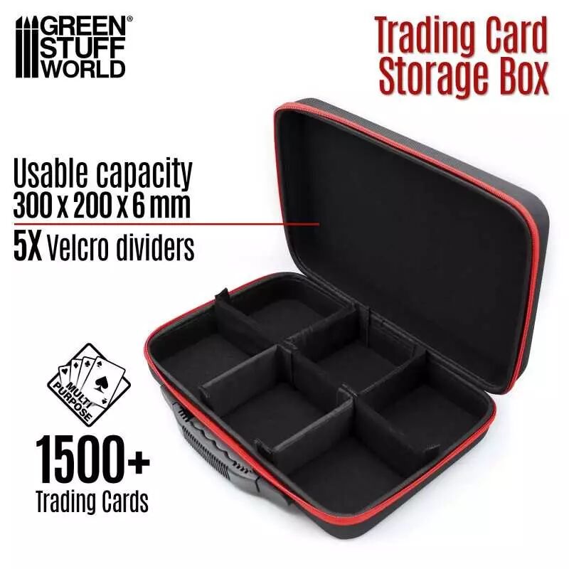 La Boîte de rangement pour cartes à collectionner Green Stuff World est un conteneur robuste et bien fabriqué, spécialement conçu pour servir de solution de protection et de transport fiable pour une collection substantielle d'objets de collection, de boîtes de jeu et d'un certain nombre d'accessoires de jeu de société essentiels, tels que les dés et les règles. Cet étui pour cartes de collection, bien que léger, se caractérise par une remarquable durabilité, ce qui en fait un choix optimal pour transporter en toute sécurité vos cartes précieuses et votre attirail de jeux de société vers diverses destinations.