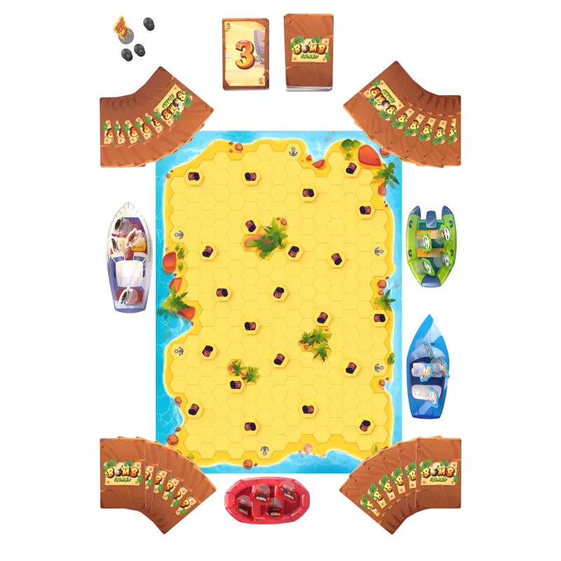 Explorez, attaquez et déjouez vos ennemis dans une quête sans merci pour les trésors de l'île ! Chasse au Trésor : Explore chaque recoin de l’île pour réunir 5 pierres précieuses et devenir le meilleur explorateur ! Battle Royale : Manie les armes pour mettre tes adversaires hors de combat et survivre ! Aventure Explosive : Maitrise l’art des bombes pour détruire les bateaux ennemis et prendre l’avantage ! Stratégie et Ruse : Utilise habilement tes 6 cartes en main pour développer ta stratégie et surprendre tes adversaires. Une Aventure infinie : Chaque partie est unique, avec des rebondissements inattendus et des moments palpitants. Un Jeu Pour Tous : Convivial et amusant, de 2 à 4 joueurs dès 7 ans. Parfait pour animer les soirées en famille ou entre amis. Éducatif : En plus de procurer des heures de plaisir, Bomb Island favorise la réflexion, la stratégie, et la créativité. Un jeu qui enrichit tout en divertissant. Explore, survis et gagne ! Remporte la victoire et deviens le héros de Bomb Island !