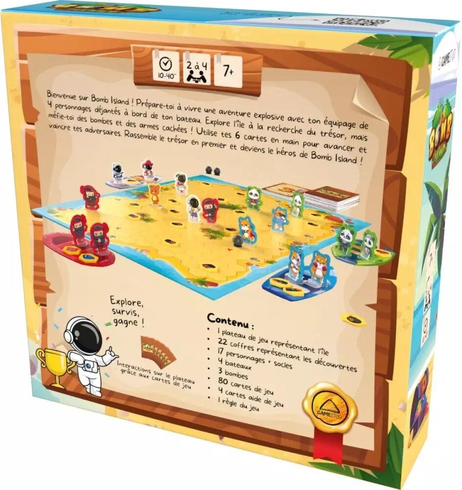 Adapté pour les joueurs à partir de 7 ans, Bomb Island est parfait pour des moments de partage en famille ou entre amis. Avec ses parties d’environ 25 minutes, il est idéal pour des soirées animées où la compétition, les alliances et les trahisons se succèdent à un rythme effréné. Accessible et drôle, il séduit autant les jeunes joueurs que les amateurs de stratégie.