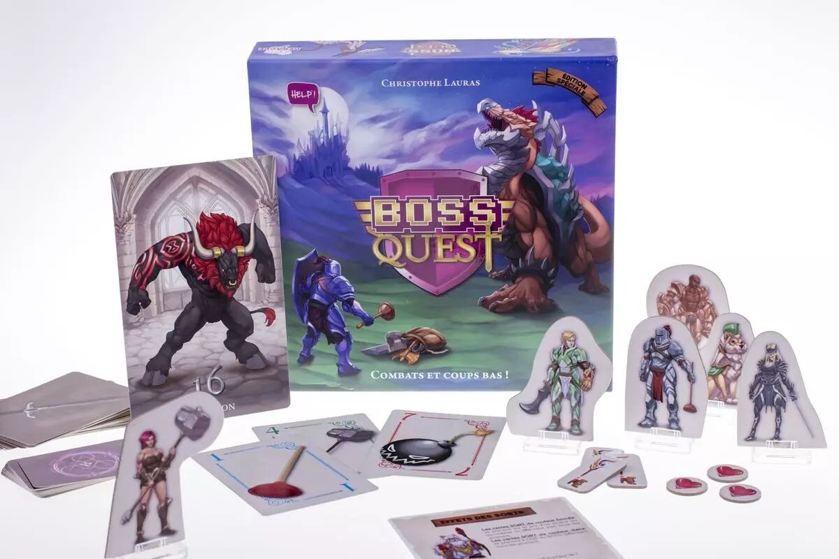 Boss Quest est un jeu fourbe et subtil accessible à toute la famille. Comme tout bon chevalier vous allez vous armer pour défier les pires Boss parodiant l’univers des jeux vidéo, et délivrer la Princesse qui a (encore) été enlevée.