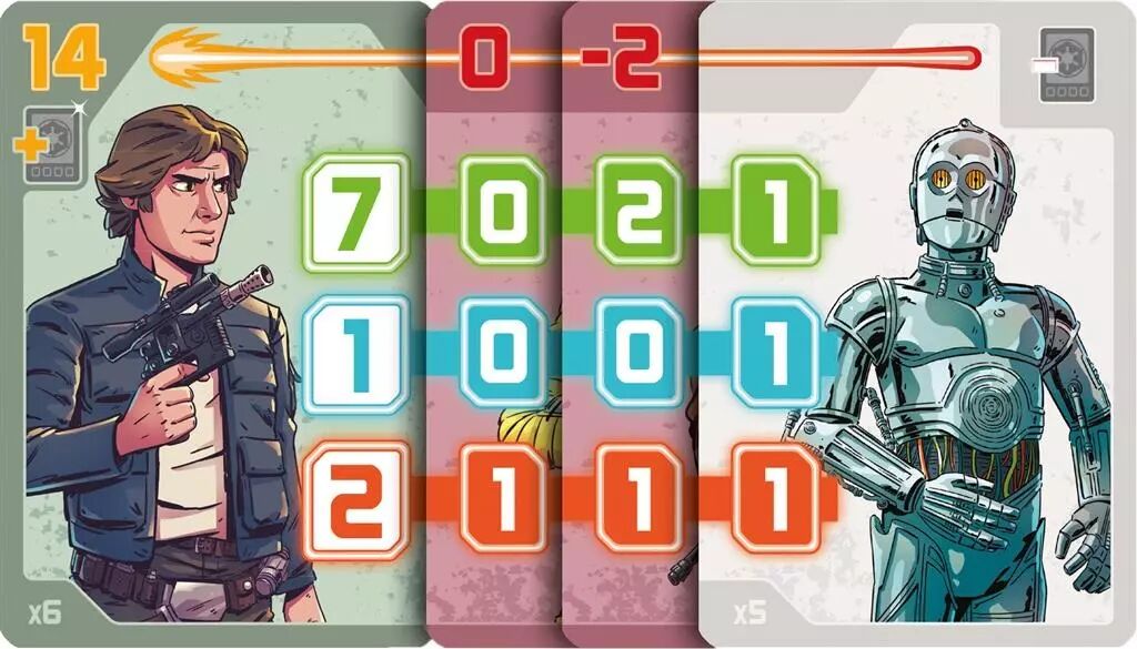 Dans Bounty Hunters, vous êtes en compétition avec les autres joueurs pour capturer les criminels les plus notoires de la galaxie. Utilisez vos cartes de mercenaires, de droïdes et de contrats pour atteindre les valeurs requises et empocher les primes.
