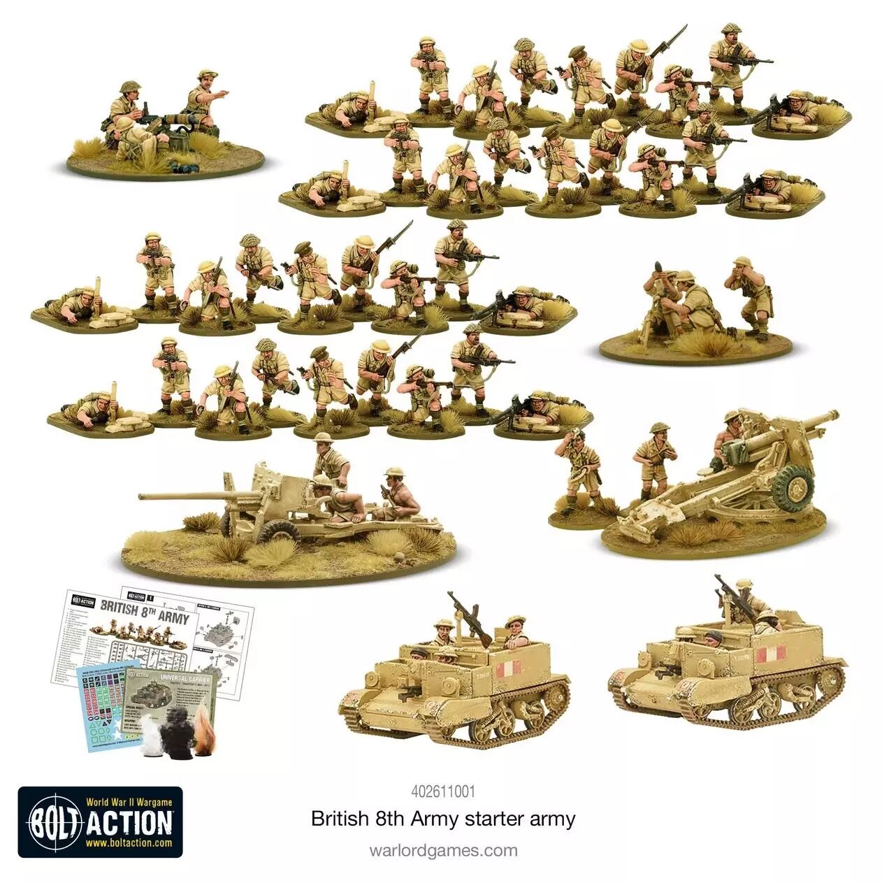 36x Fantassins de la 8ème Armée (Plastique) : Le cœur de votre force, assemblable en section de fusiliers, vétérans ou troupes du génie.