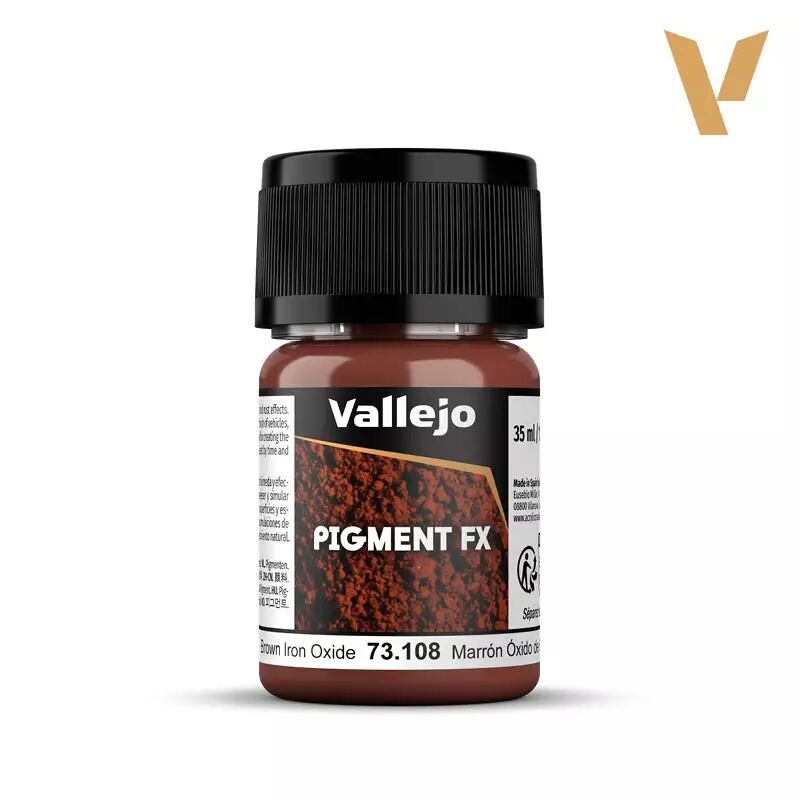 Vallejo Pigments, ce ne sont pas des peintures. Ce sont des poudres minérales-des oxydes naturels et synthétiques qui existent depuis des millénaires dans la nature. Ocre rouge foncé, terre d'ombre, poussière urbaine, rouille anthracite. Vallejo les a simplement moulu finement, purifié, et conditionné pour le modéliste passionné. Vous achetez littéralement la même matière qui vieillit les vraies structures, mais en version ultra-concentrée, facile à manipuler et à contrôler.