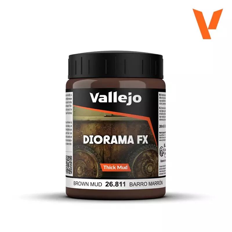 Vallejo Diorama FX 26.811 Brown Mud, boue brune à la consistance dense pour sols agricoles, chantiers et routes de campagne.