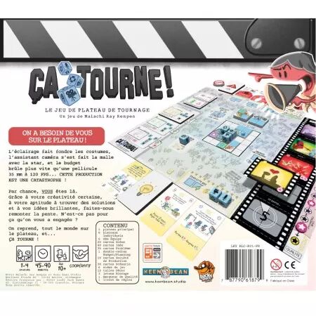 Dans ce jeu coopératif, œuvrez ensemble à la création du meilleur film possible ! À votre tour, vous assignez à l’équipe différentes actions sur le plateau principal, sur votre plateau individuel, ou dans le Studio, pour filmer des Scènes. Vous gagnez si vous terminez un film de Qualité ou s’il est Tellement Nul que cela en devient Génial ! Vous perdez si vous manquez de temps ou d’argent pendant la production, ou si votre film est de Qualité médiocre.