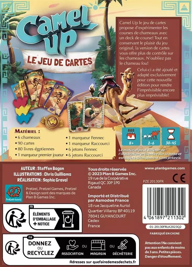 Camel Up - Le jeu de cartes propose d'expérimenter les courses de chameaux avec un deck de course ! Tout en conservant le plaisir du jeu original, la version de cartes vous offre plus de contrôle sur les chameaux. N'oubliez pas le chameau fou !
