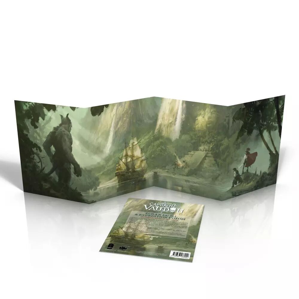 Un magnifique écran, illustré par Mathieu Lauffray, compilant les tables les plus importantes pour faire jouer Capitaine Vaudou.