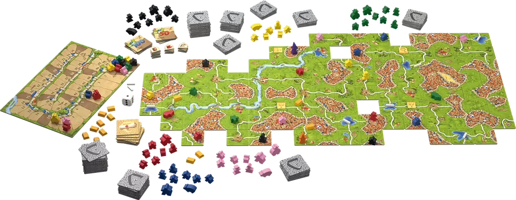 Les extensions incluses sont les suivantes : la rivière, l'abbé, Auberges & Cathédrales, Marchands & Bâtisseurs, les ornithoptères, les hérauts, les bacs, les mines d'or, Mage & sorcières, les voleurs, et les agroglyphes?!