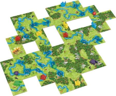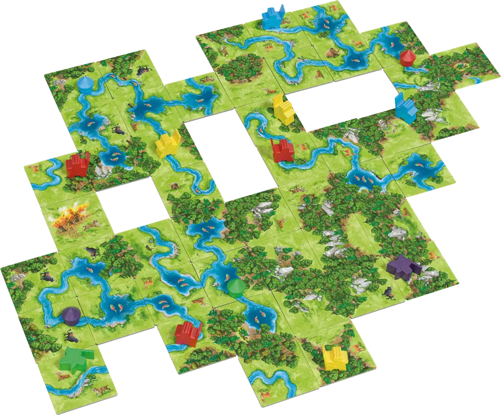 Dans Carcassonne – Chasseurs et Cueilleurs, les joueurs construisent un paysage bucolique et sauvage avec leurs tuiles. Le but est de placer judicieusement ses meeples en leur attribuant toujours une caractéristique (cueilleurs ou chasseurs), afin de gagner des points. Les huttes et les menhirs seront des atouts indéniables pour que votre tribu prenne l’avantage !