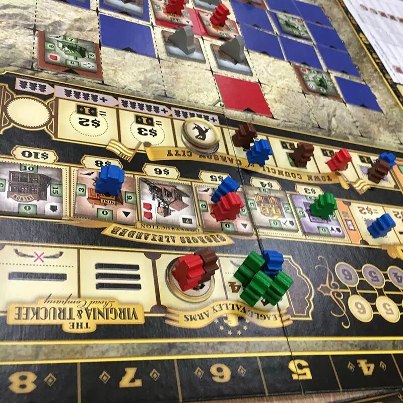 Dans Carson City, chaque joueur construit sa ville en plaçant des cowboys et en planifiant ses actions. Les choix stratégiques sont nombreux : construire des bâtiments, gérer ses ressources ou défier ses adversaires dans des duels mémorables. L’interaction constante entre les joueurs garantit une tension palpitante à chaque tour.