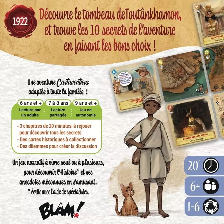 Cartaventura Odyssée, c'est l'expérience Cartaventura adaptée à toute la famille, dès 6 ans ! Une aventure dont vous êtes le (jeune) héros aux règles très simples, des univers captivants pour les petits comme pour les grands; et de quoi apprendre l'histoire en s'amusant, grâce aux contenus pédagogiques rédigés avec des spécialistes.