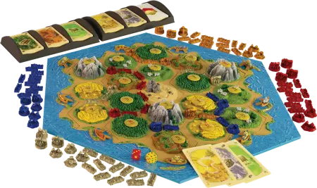 Dans Catan : 3D Edition Deluxe, l'île de Catan s'élève de la table pour une expérience immersive sans pareille. Vos colonies poussent sur des champs de céréales fertiles et vos villes se nichent sur les flancs de montagnes majestueuses. L'aspect de la terre est basé sur des tuiles de terrain sculptées à la main par le concepteur du jeu, Klaus Teuber.