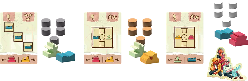 Chaque joueur commence avec une carte projet et doit atteindre des objectifs en positionnant ses bâtiments dans des secteurs précis. Lors de chaque tour, vous pouvez déplacer votre architecte selon les cases indiquées par vos cartes et construire en fonction des plans. Placez vos superviseurs dans les zones stratégiques pour remporter des points bonus à la fin de la partie. La stratégie de gestion des ressources est clé : il faut savoir quand choisir une carte projet ou positionner un bâtiment, tout en anticipant les actions de vos concurrents.