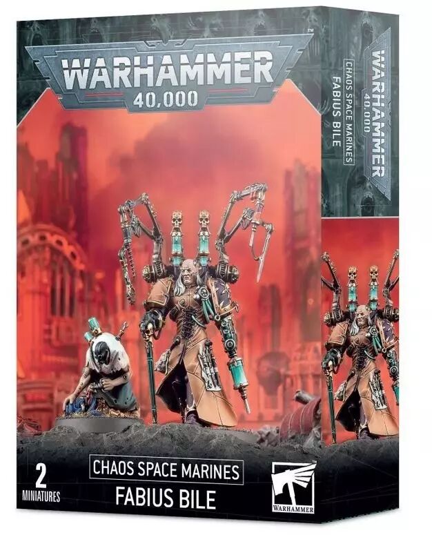 Avec l'assistance de Fabius, vous pourrez lâcher sur la malheureuse galaxie des horreurs génétiquement altérées et soumettre vos ennemis. Bile est par ailleurs largement capable de se défendre, notamment avec son Bâton de Tourment. Il peut s'accompagner d'un Surgeon Acolyte pour l'assister dans sa vile besogne. Ce duo fait un excellent projet de modélisme et de peinture et représente un ajout de choix pour toute armée de Chaos Space Marines.