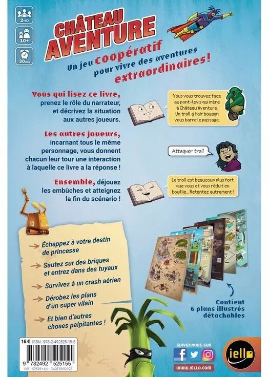 Dans "Château Aventure", vous et vos compagnons de jeu vous retrouvez propulsés dans des univers variés, chacun avec son propre ensemble de défis et de mystères. Un joueur endosse le rôle du narrateur, décrivant méticuleusement les scènes, les objets et les personnages rencontrés. Les autres joueurs, véritables protagonistes de l'histoire, doivent user de leur perspicacité et de leur créativité pour interagir avec le monde qui les entoure et progresser dans l'aventure.