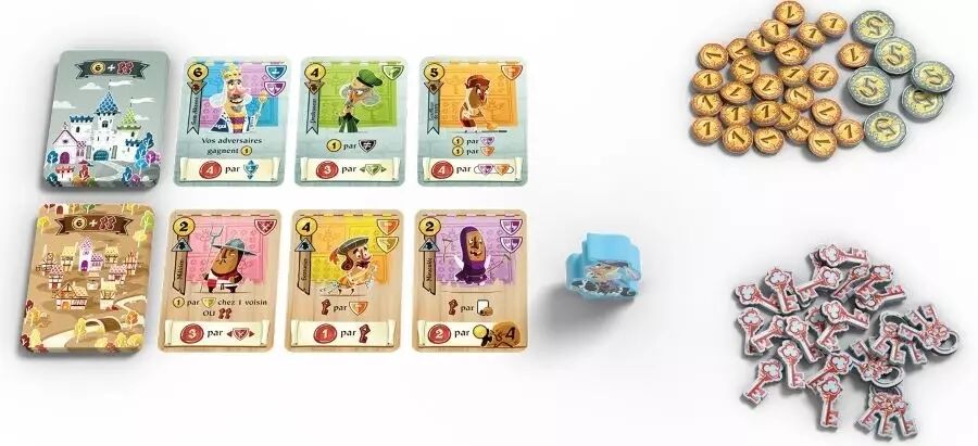 L'une des originalités du jeu repose sur la gestion des clés et des pièces. Les clés permettent de renouveler les cartes disponibles ou d'en défausser pour réorienter votre stratégie. Quant à l'or, il faut le gérer intelligemment, car chaque pièce non placée sur vos cartes est perdue en fin de partie.