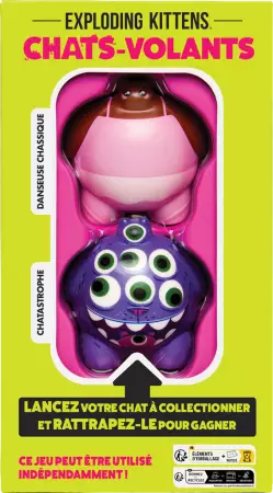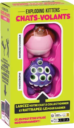 Dans Chats-Volants, chaque duel est une explosion de fun : 2 chats en mousse, des cartes d’action complètement barrées, et une course contre la montre pour remporter la victoire. Facile à apprendre, hyper drôle à jouer et totalement rejouable. Collectionnez-les différents packs qui contiennent des chats en mousse aux looks très spéciaux et des cartes exclusives pour compliquer la tâche de vos adversaires avec des actions inédites. Et rien ne vous empêche de vous retrouver à plus de 2 joueurs pour tous vous affronter dans une succession de défis hilarants. Que le meilleur gagne !