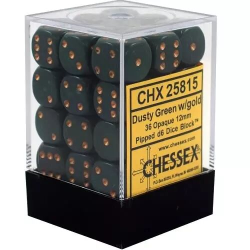 Plusieurs coloris sont disponibles pour le Set de 36 Dés Chessex: OPAQUE. Ces dés mesurent 12 mm de côté.