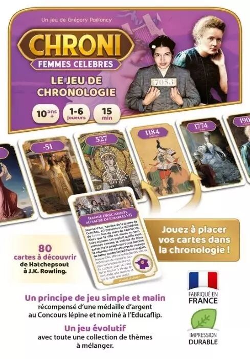 Chroni – Les Femmes Célèbres est un jeu de cartes de connaissances pour améliorer et tester sa culture générale.