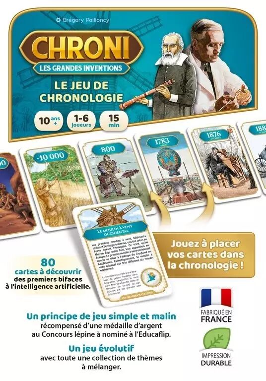 Chroni – Les Grandes Inventions est un jeu de cartes de connaissances pour améliorer et tester sa culture générale.