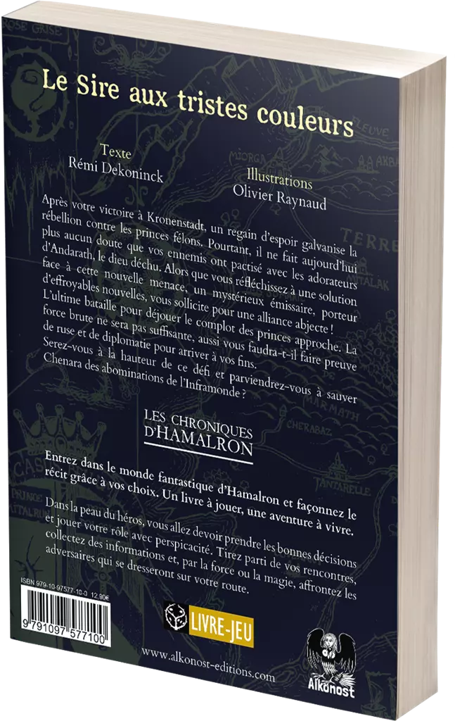 Réf. : PSDHAMA03FR Le Sire aux Tristes Couleurs est le troisième volume des Chroniques d'Hamalron une série de livre dont vous êtes le héros qui vous entraînera dans le monde fantastique d'Hamalron.