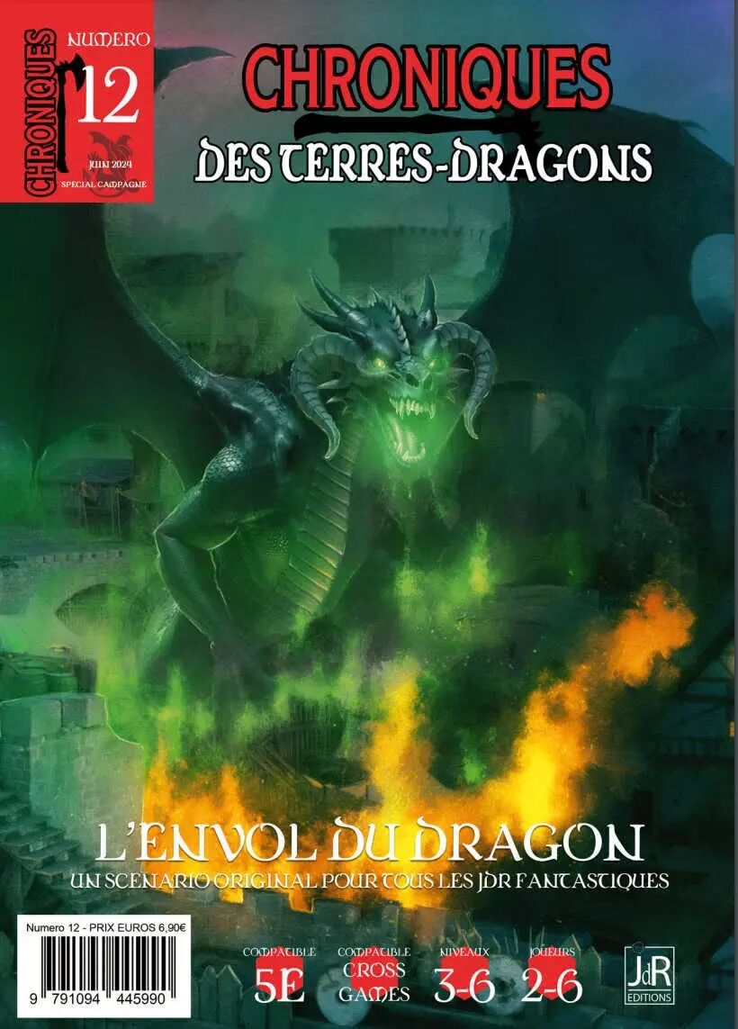 Dans ce numéro 12 découvrez L’envol du dragon : Quand le registre généalogique de la famille du comte est volé, personne ne comprend vraiment l’intérêt. Lancés après le cambrioleur, les personnages vont vite découvrir qui se cache derrière les événements récents et à quoi va servir ce livre. Entre coup d’état et tremblements de terre, les personnages auront probablement bien du mal à éviter le réveil du dragon. Allégorie ou monstre véritable ? De la réussite de cette partie dépend la survie de la ville.