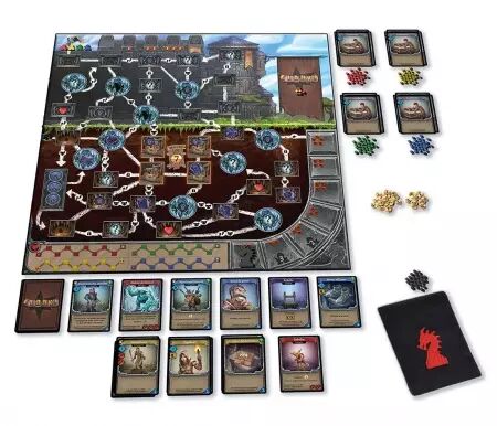 Chaque joueur commence avec un deck de base qu’il devra améliorer tout au long de la partie. Les cartes apportent des compétences pour se déplacer, combattre ou acheter de nouvelles cartes. Choisissez entre prudence et risque pour maximiser vos chances de succès, car chaque erreur peut attirer la colère du dragon !