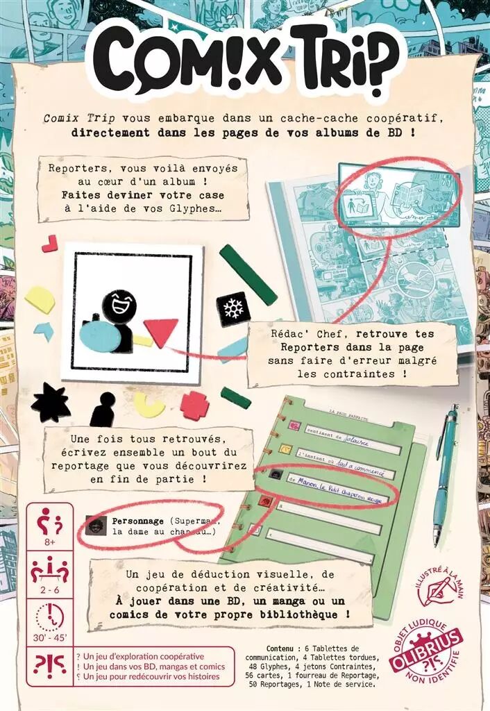 Pas de temps mort, un rythme bien dosé et une mécanique simple à prendre en main font de Comix Trip un jeu accessible mais exigeant, qui séduit autant les novices que les habitués des jeux d’ambiance. Le déblocage des reportages finals offre une vraie récompense et un sentiment d’accomplissement collectif.