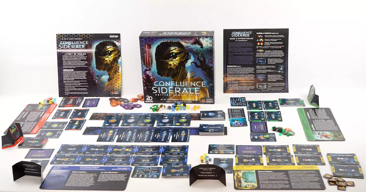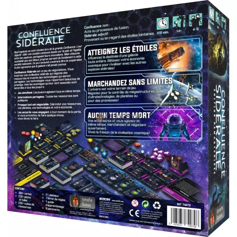 Neuf espèces se sont réunies lors de la grande Confluence. Leur Objectif: bâtir une société commune basée sur la paix et l'égalité entre les espèces en partageant leurs innovations. Mais chacune souhaitait que ses idéaux propres servent de fondement à cette société naissante. Ce qui s'ensuivit s'avéra être la coopération la plus agressive que la galaxie ait jamais connue .Confluence Sidérale est un jeu de négociations. Vous incarnez une civilisation sidérale qui négocie des ressources et invente des technologies qui seront partagées. Les technologies vous rapportent beaucoup de prestige mais les avantages qui leur sont associés sont accordés à tous les joueurs.