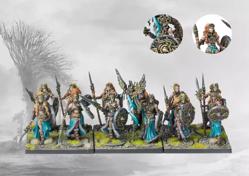 Le culte des Valkyries proclame haut et fort la divinité des Einherjar à qui veut l'entendre. Épouses soldates de leurs dieux vivants, elles sont prêtes à donner leur vie pour leurs champions divins sur le terrain et en dehors. Ces guerrières d'élite, sélectionnées parmi les plus féroces combattantes de Nords, incarnent l'incarnation vivante de la guerre sacrée. Leur propre message s'oppose à celui des Einherjar eux-mêmes, qui vénèrent les Anciens Dieux morts en ruinant le Ragnarök. Mais qui de mieux pour s'élever à leur place que les champions vivants qui ont guidé l'humanité pendant ses périodes les plus sombres ? Sur le champ de bataille, les Valkyries forment une force de frappe mobile et destructrice, capable de tourner l'issue du combat en un instant.