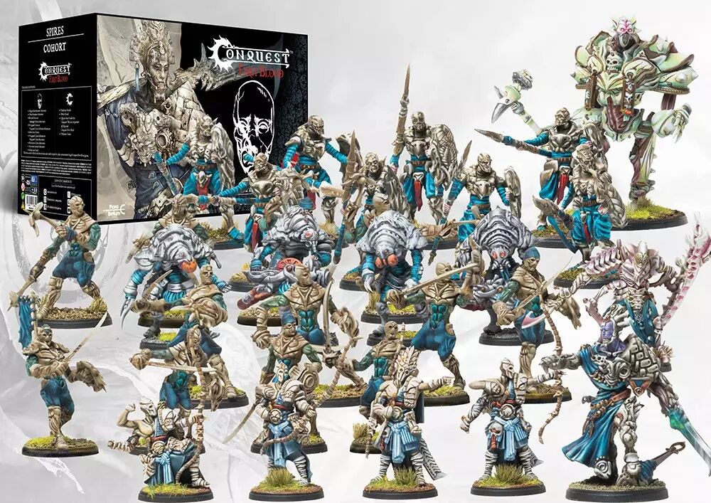 Un starter Cohorte pour 1 joueur, prêt à jouer un Tournoi dès sa sortie de la boîte. Assemblez vos figurines et incarnez cette armée de 1 000 points pour notre style de jeu d'escarmouche, First Blood ! Nous vous fournissons également tout le nécessaire pour jouer en utilisant le style de jeu en rang et en flanc du Dernier Argument des Rois. Ce set Cohorte Flèches comprend un Haut Clone Exécuteur, un Précepteur de Protection, 12 Clones d'Avant-garde/Initiés Clones d'Avant-garde, 8 Clones Liés, 1 Sentinelle Incarnée, 4 Drones de Désolation et 4 Clones de Tireur d'Élite. 31 figurines au total, avec tous les socles et socles, les Cartes de Commandement, les Instructions d'Assemblage, le Guide de Démarrage Rapide et le Guide de Bienvenue. Comment jouer les Flèches ? Les Flèches peuvent déployer une variété d'options, des hordes de drones aux rangs de clones prêts au combat, et même des armées d'élite composées entièrement de bêtes de guerre et de costumes Avatara. La vitesse est l'arme favorite des Spires, les rendant plus rapides que leurs ennemis et capables d'exploiter cet avantage grâce à la biomancies et à la phéromance, qui leur permettent de pousser leurs soldats au-delà de leurs limites, les rendant plus forts, plus rapides et plus redoutables, au prix de leur propre vie. Cependant, Spires ne gaspillerait pas des vies de manière aussi inefficace ; c'est pourquoi ils disposent de capacités de guérison incroyablement puissantes pour garantir que vos créations meurent au moment opportun. Leurs plans de bataille reposent sur l'échange d'unités avec leurs adversaires grâce à leurs biomancies.