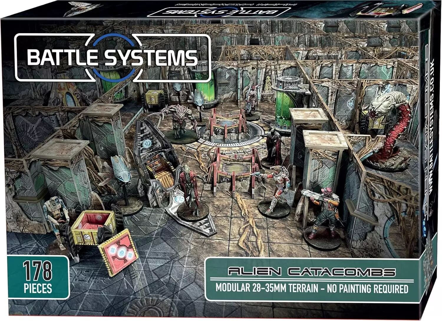 Alien Catacombs est un set de terrain modulaire complet pour Core Space First Born (et tout jeu sci-fi 28-35mm). À la différence des extensions de jeu, c'est du pur terrain - une boîte de construction 3D d'astéroïdes creusés et infiltrés par la technologie alien.