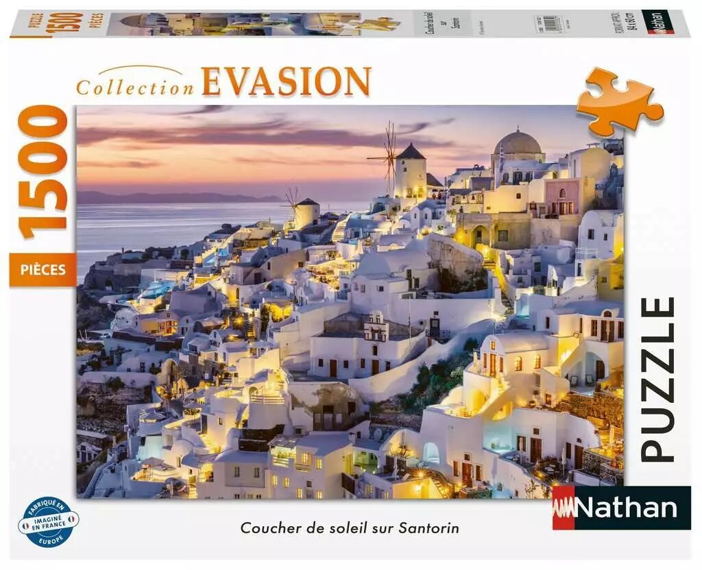 Accueil > Jeux de société > Puzzle et Casse-Têtes > Puzzles Adulte > Coucher de soleil sur Santorin - Puzzle 1500 pièces - Collection Evasion - Nathan