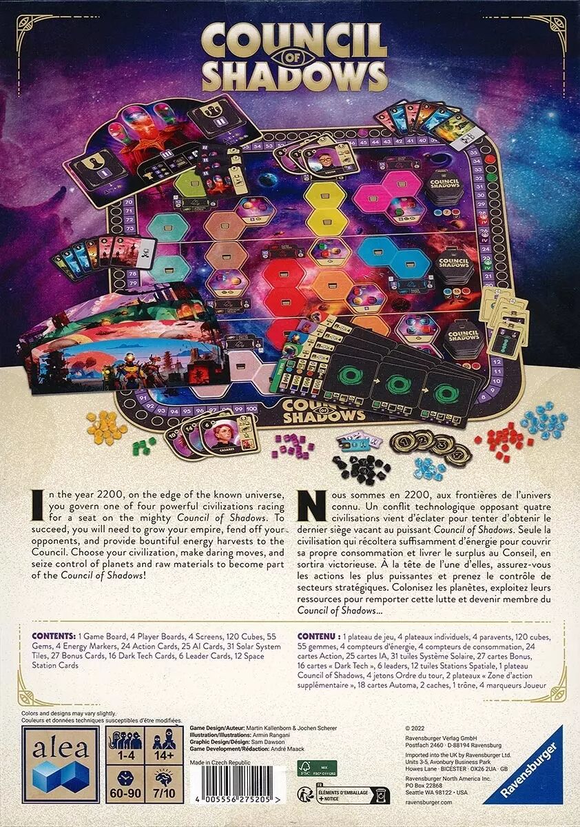 Celui d’entre vous qui accomplira le mieux cette mission obtiendra le droit de siéger au Council of Shadows et d’en devenir membre à part entière. Une lutte technologique sans merci s’engage alors entre les civilisations et un combat passionnant pour s’emparer de l’énergie de l’univers commence…