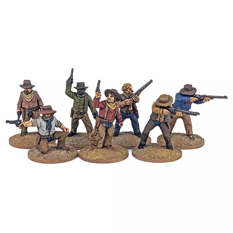 Réf. : DMH003 Les vrais héros du Far West ! 7 figurines métal de cowboys résilients et polyvalents. Excellents en combat rapproché, adaptables à tous les terrains. Pour les joueurs cherchant équilibre, bravoure authentique et combats directs. À peindre et à vivre.