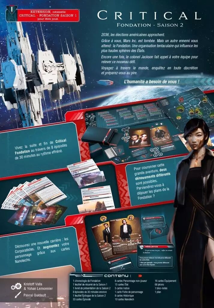 Critical est construit comme une série télévisée qui vous propose de découvrir cette expérience unique : vivre une aventure dont les tenants et les aboutissants vous appartiennent. Relevez le défi de la Saison 2 - Fondation au travers de 9 épisodes au rythme effréné. Chaque épisode dure une trentaine de minutes pour vous laisser libres d’adapter votre temps de jeu à votre rythme.