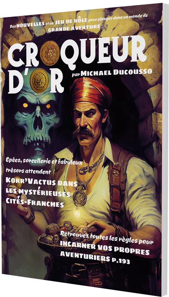 Croqueur d’or est à la fois un recueil de nouvelles et un jeu de rôles. Il vous entraîne dans les cités franches de la grande époque de la piraterie, celles où circulent tant de légendes sur des trésors fabuleux, des rois sorciers et des cités oubliées.