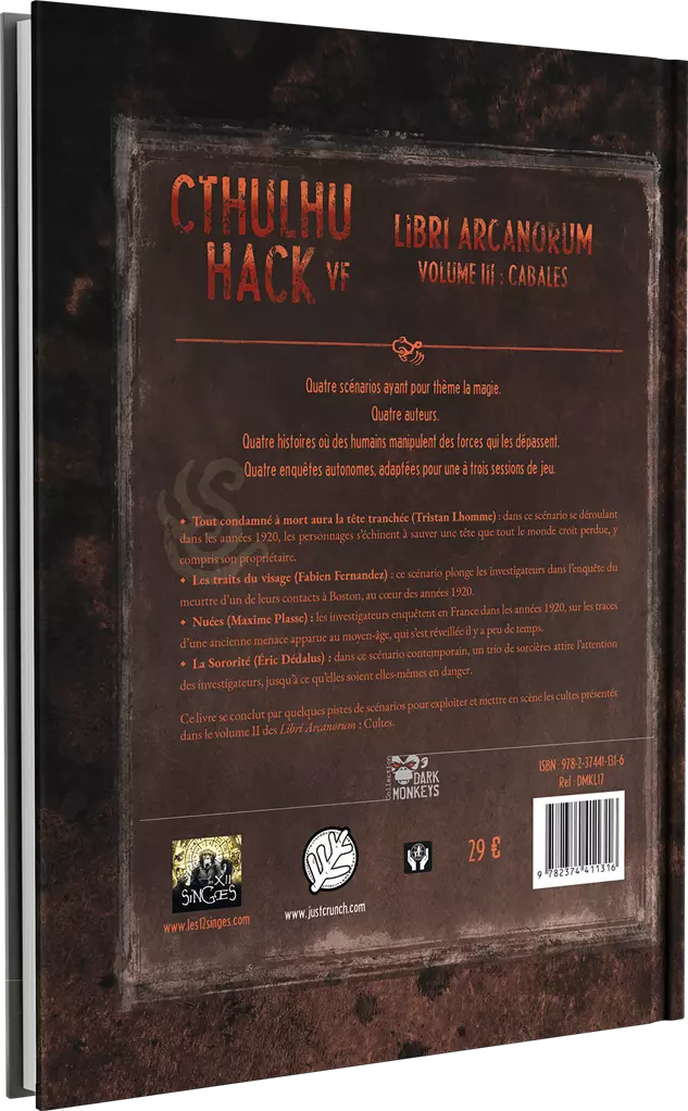 Cabales est un recueil de 4 scénarios liés à la magie et à la sorcellerie, écrit par 4 auteurs aguerris du jeu de rôles.