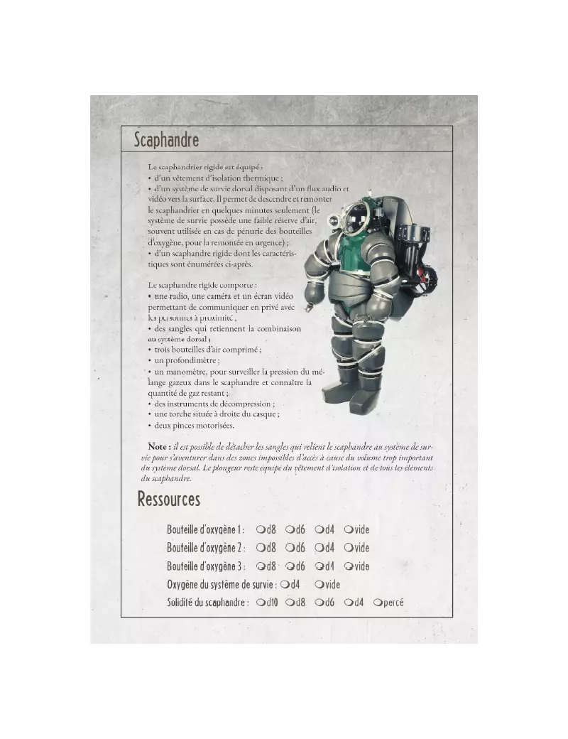 8 feuilles indépendantes (personnages prêts à jouer et aides de jeu)