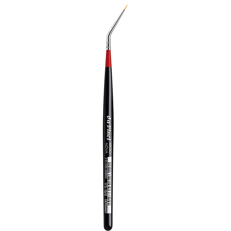 La ligne da Vinci MICRO-NOVA, qui a été lancée avec succès il ya deux ans, est complétée par une version biseautée. Le pinceau est plié à la main à l‘angle idéal, de sorte que même les zones difficiles et cachées sur l‘objet puissent être peintes avec précision. Idéal pour la peinture miniature, la peinture tabletop et la micro peinture.