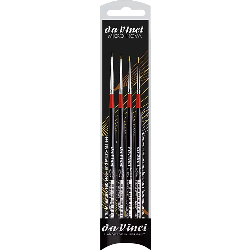 Cette ligne avec les tailles les plus petites est disponible en poils de martre rouge Kolinsky et en fibres synthétiques NOVA. Pour les distinguer, les pinceaux portent « une bague de couleurs » différente au bord de la virole.