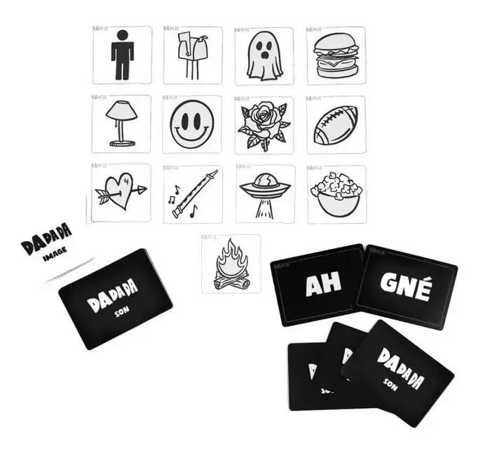 Dans Dadada, pas besoin de parler une langue existante, ici c’est la fantaisie et la créativité qui dominent. Les joueurs forment des mots avec des sons inventés pour faire deviner des mots en français à leurs partenaires. Ce jeu original casse les codes des jeux classiques et garantit des moments de pure folie.