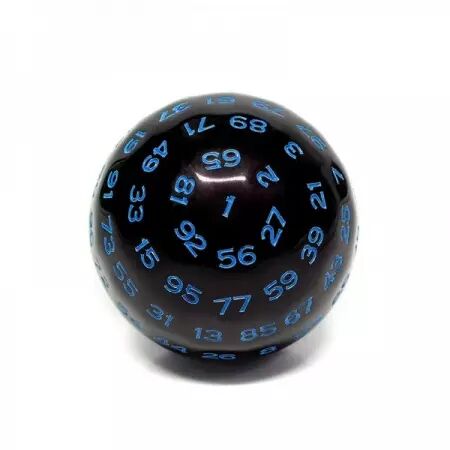 Accessoire idéal pour les jeux de rôles et autres jeux. Grand dé D100 opaque de 49 mm de diamètre avec nombres de 1 à 100 gravés en bleu sur les 100 faces.