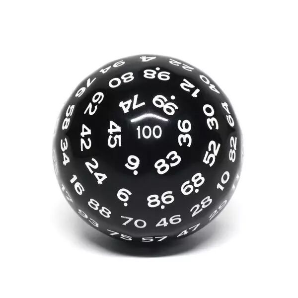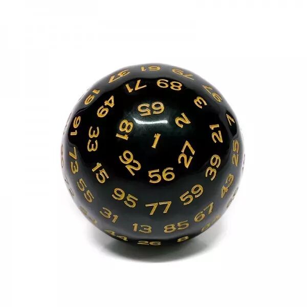 Dé à jouer multifaces avec 100 côtés de 1 à 100.