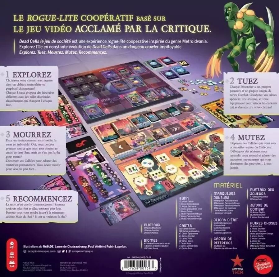 Conçu pour la coopération, Dead Cells : Le Jeu de Plateau invite les joueurs à unir leurs forces pour survivre aux biomes mortels. Chaque joueur incarne un « Beheaded » avec des capacités uniques, et l’ensemble du groupe progresse en tant qu’entité. En décidant des meilleurs chemins et en combinant leurs forces, les joueurs créent une synergie essentielle à la réussite des missions. C’est une expérience unique où l’esprit d’équipe est la clé de la victoire !